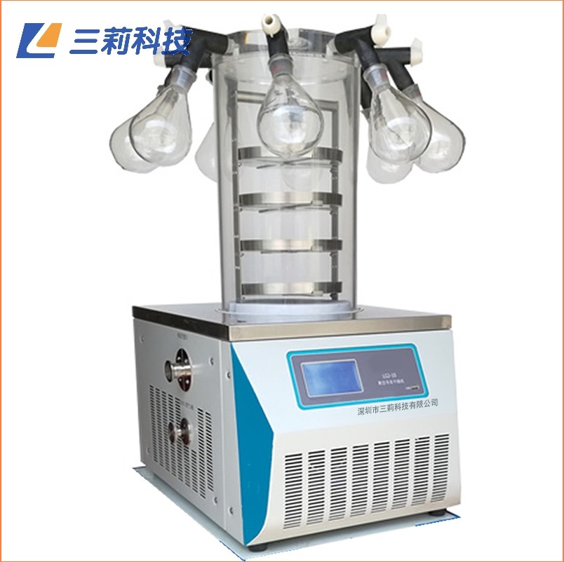 真空冷凍干燥機(jī)采用升華的原理,物料預(yù)凍后在真空狀態(tài)下升華干燥。經(jīng)冷凍干燥處理的物品易于長期保存,加水后能恢復(fù)到凍干前狀態(tài)并保持原有生化特性。廣泛用在醫(yī)學(xué)、制藥、生物研究、化工和食品等領(lǐng)域。LGJ-10多歧管壓蓋型冷凍干燥機(jī)是小型凍干機(jī),適用于實驗室、科研單位小試凍干,使用方便,占地空間小,易于維護(hù)。廣泛應(yīng)用在大學(xué)實驗室、科研機(jī)構(gòu)、生命科學(xué)、生物技術(shù)、食品化工、高檔原料等領(lǐng)域物料的凍干。凍干后的物料,其形狀、顏色、分子結(jié)構(gòu)保存完好,加水后能快速恢復(fù)原狀。
